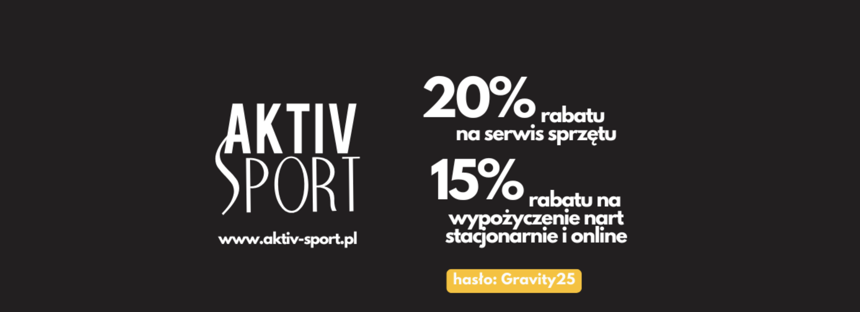 15% zniżki na wypożyczenie sprzętu i 20% zniżki na serwis (z kodem Gravity25) – obowiązuje przez cały sezon, niezależnie od wyjazdu!