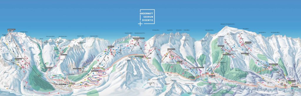 Andermatt należy do ośrodków zimowych z najwyższą gwarancją śniegu w Szwajcarii! Jednocześnie znajdziemy tu bardzo zróżnicowane tereny narciarskie. Dla tych którzy lubią spokojne zjazdy lub wybiera się z rodziną, powinni wybrać teren narciarski na Nätschen i w Sedrun. Dla miłośników zjazdów freeridowych oraz stromych zjazdów najbardziej odpowiedni jest Gemsstock.