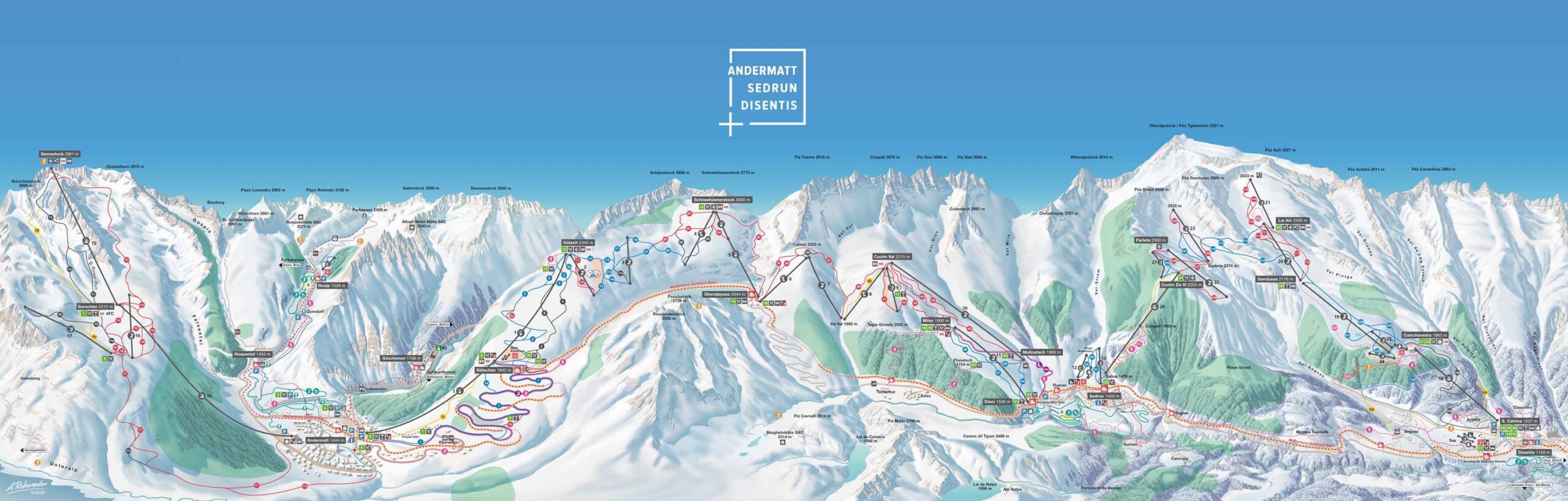 Andermatt-Sedrun-Disentis to największy połączony ośrodek narciarski w Szwajcarii Centralnej, który przyciąga miłośników zimowych sportów z całego świata. Dolina Urserntal u stóp Przełęczy Gotarda zalicza się do najbardziej imponujących wysokogórskich dolin w Szwajcarii, a samo Andermatt to jedna spośród trzech wiosek w dolinie. To właśnie tu – w Andermatt – otrzymujemy najwyższą gwarancję znakomitych warunków śniegowych i szeroki wachlarz możliwości, który zaspokoi nawet najbardziej wytrwanych narciarzy.