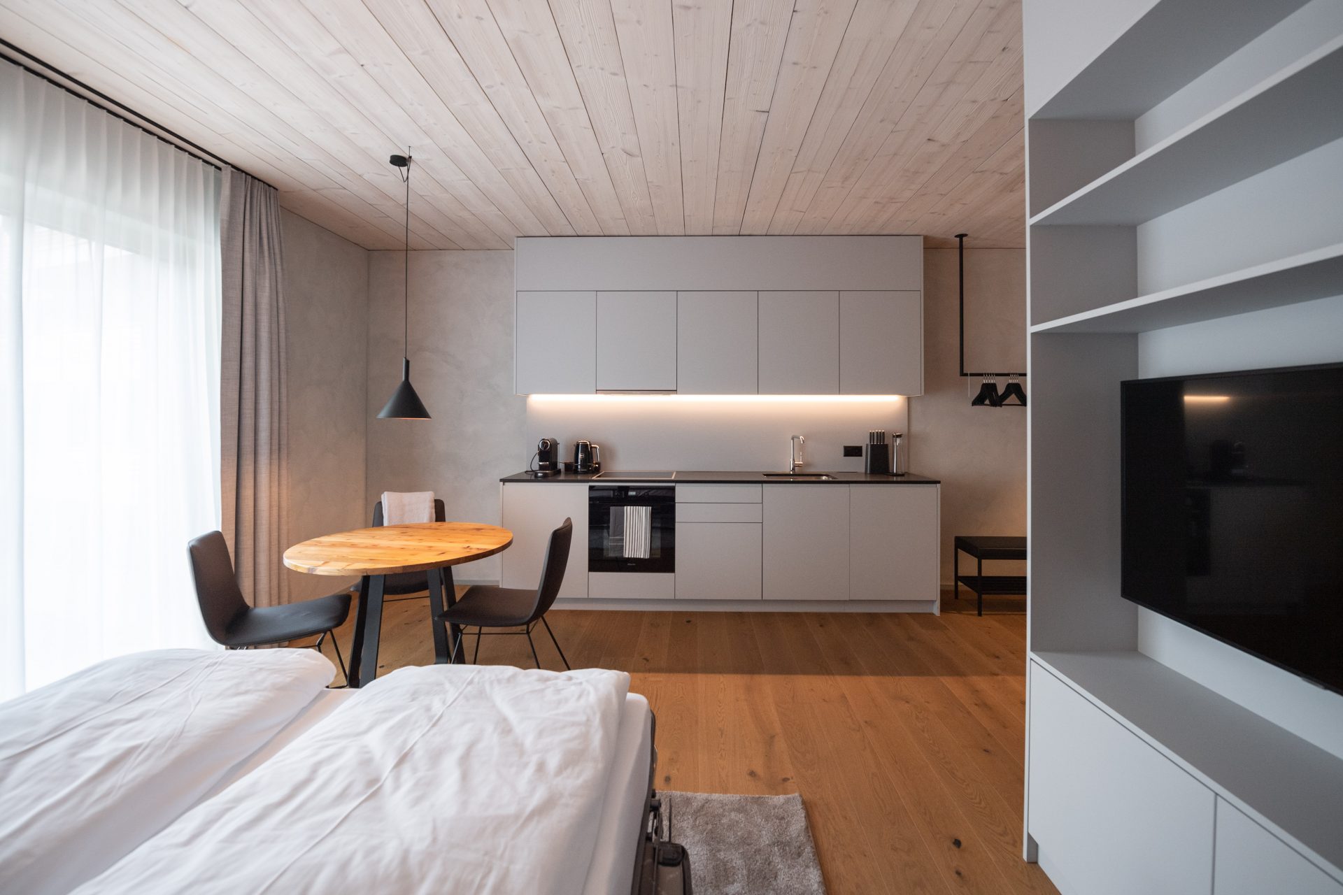 Standardowe apartamenty oferują wszystko, czego potrzebujesz jako rodzina lub z przyjaciółmi: przestronne przestrzenie z oddzielnymi częściami mieszkalnymi, alpejski design i pełne wyposażenie.