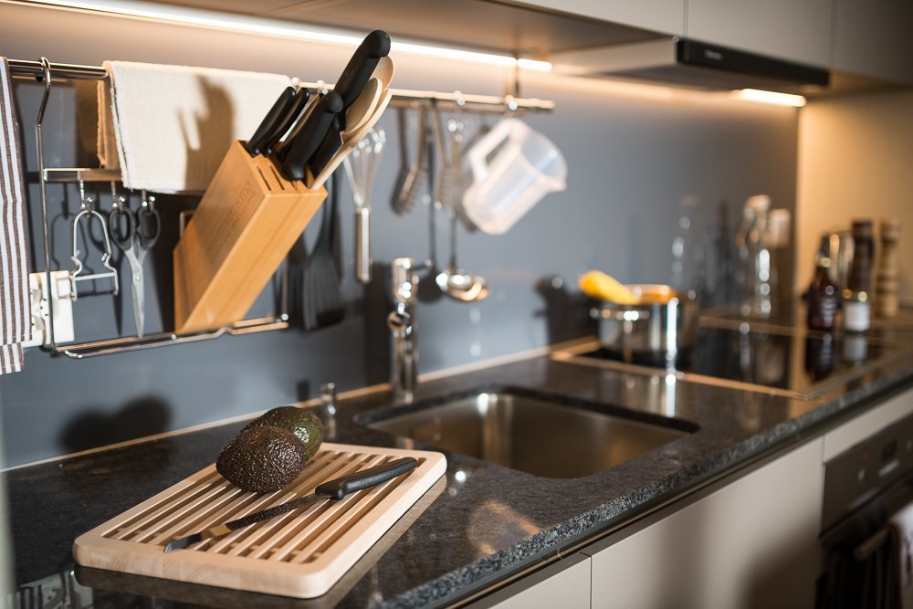 Ekskluzywne apartamenty wykończone materiałami najwyższej jakości są wyposażone w wysokiej klasy, nowoczesne sprzęty i urządzenia (między innymi zmywarkę, piekarnik, ekspres do kawy, suszarkę, lodówkę etc.).