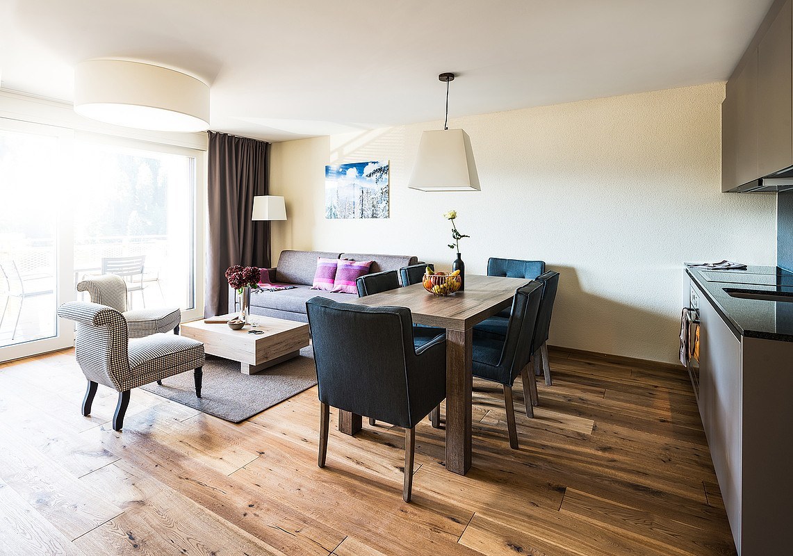 W Peaks Place znajdziesz dosłownie wszystko czego potrzebujesz do zimowego wypoczynku: duże, przestronne i bardzo widne apartamenty, urządzone jak na Szwajcarów przystało – nowocześnie i designersko, z poszanowaniem alpejskiego klimatu i charakteru miejsca. Całość dopełniają detale z drewna i tkaniny w kolorach ziemi, które tworzą niezwykle przytulny i domowy klimat.
