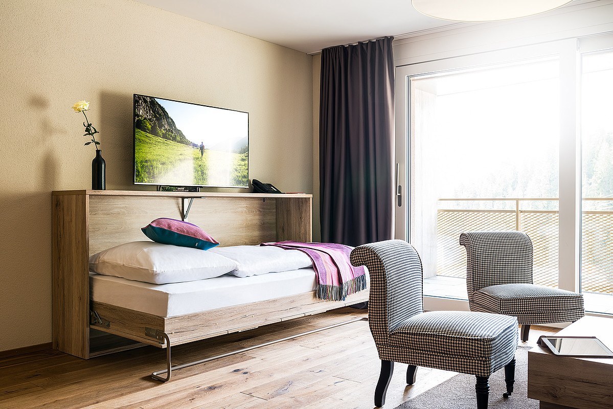 Peaks Place to rezydencja o standardzie 4 – gwiazdkowego hotelu nominowana do World’s Best New Ski Hotel 2017! Długi, szeregowy budynek doskonale wpasowuje się w krajobraz majestatycznych szczytów i lasów. Wszystkie apartamenty mają duże balkony, na których można odpocząć po dniu na stoku lub wypić poranną kawę. Zaletą jest to, że wszystkie zwrócone są na południowy-zachód, co sprawia, że przez cały dzień wpada tam światło. Już od pierwszego momentu zachwycisz się widokiem na olśniewająco, turkusowe sztuczne jeziorko Isla Iagi nad którym rozpościera się imponującą panorama Alp z widocznym szczytem Crap Sogn Gion.