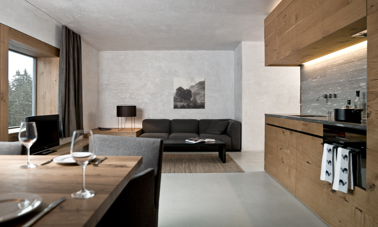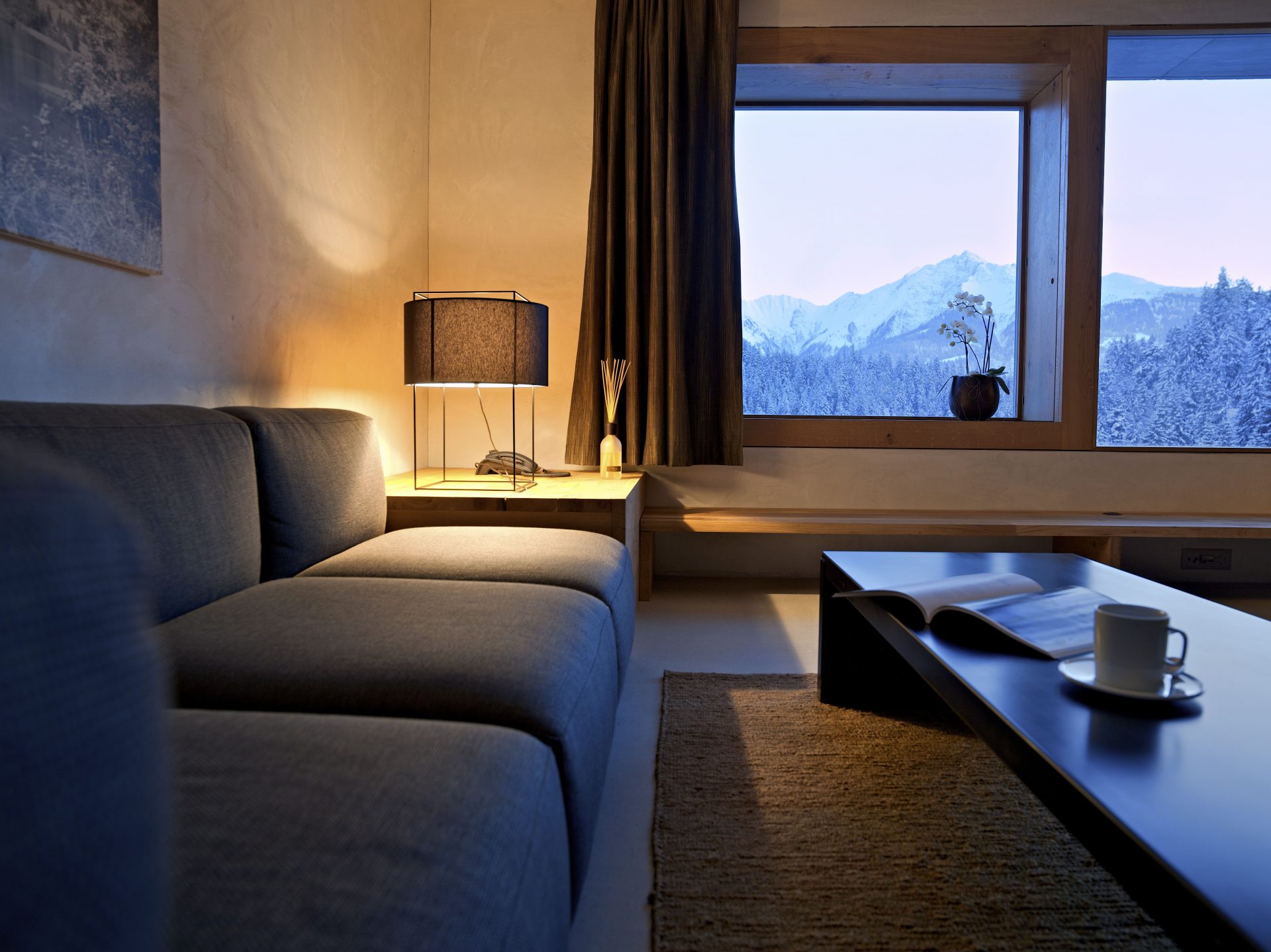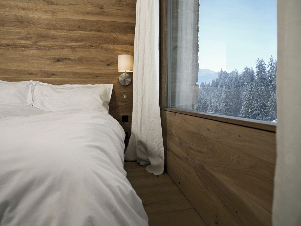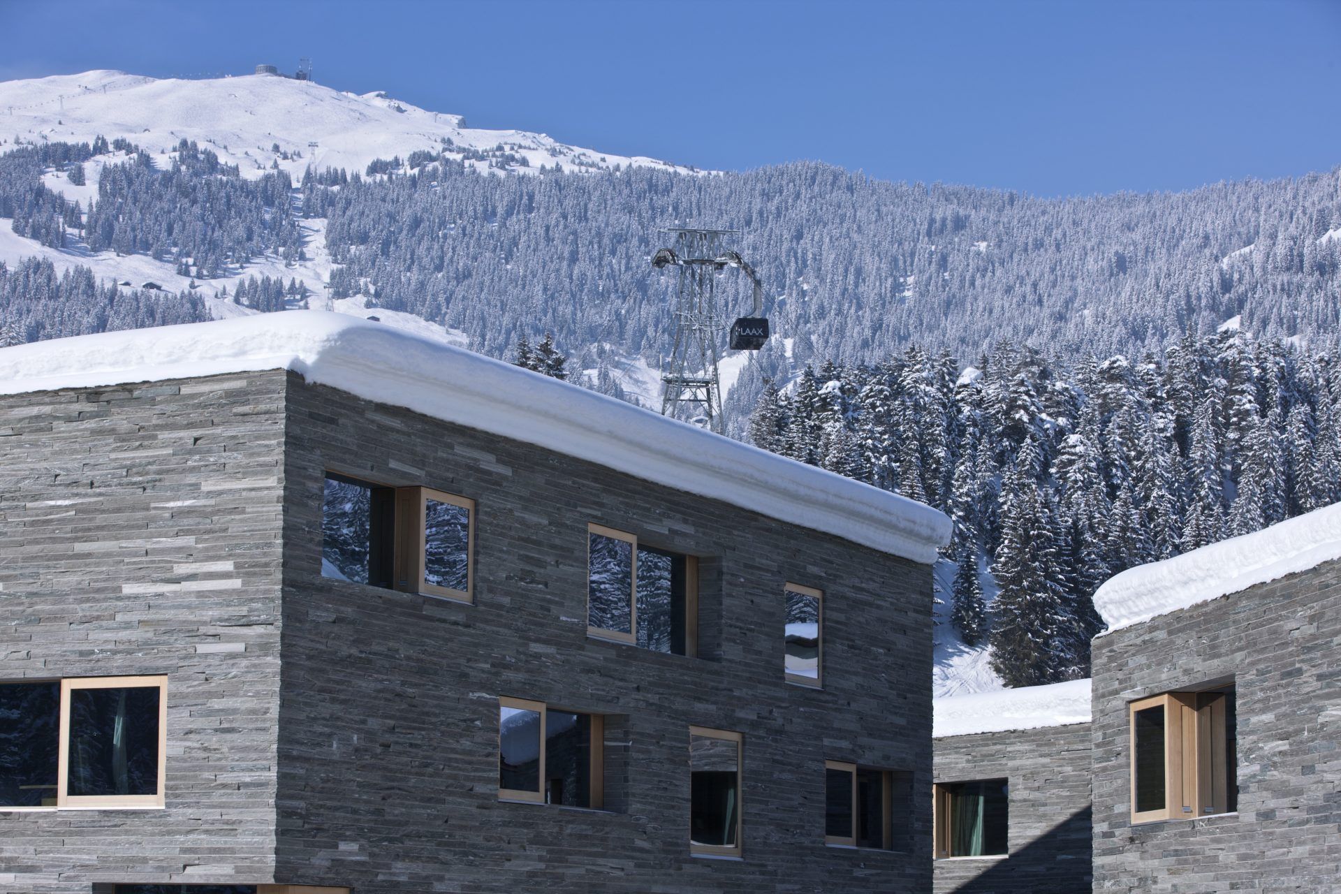 Zewnętrzne elewacje wyłożone są kwarcytem z lokalnych kopalni, a ultranowoczesne, modernistyczne, proste i eleganckie wnętrza to połączenie jasnego drewna, stali i kamienia. Wszystko jest zaprojektowane w zgodzie z naturą, utrzymując idealną temperaturę wnętrz.
