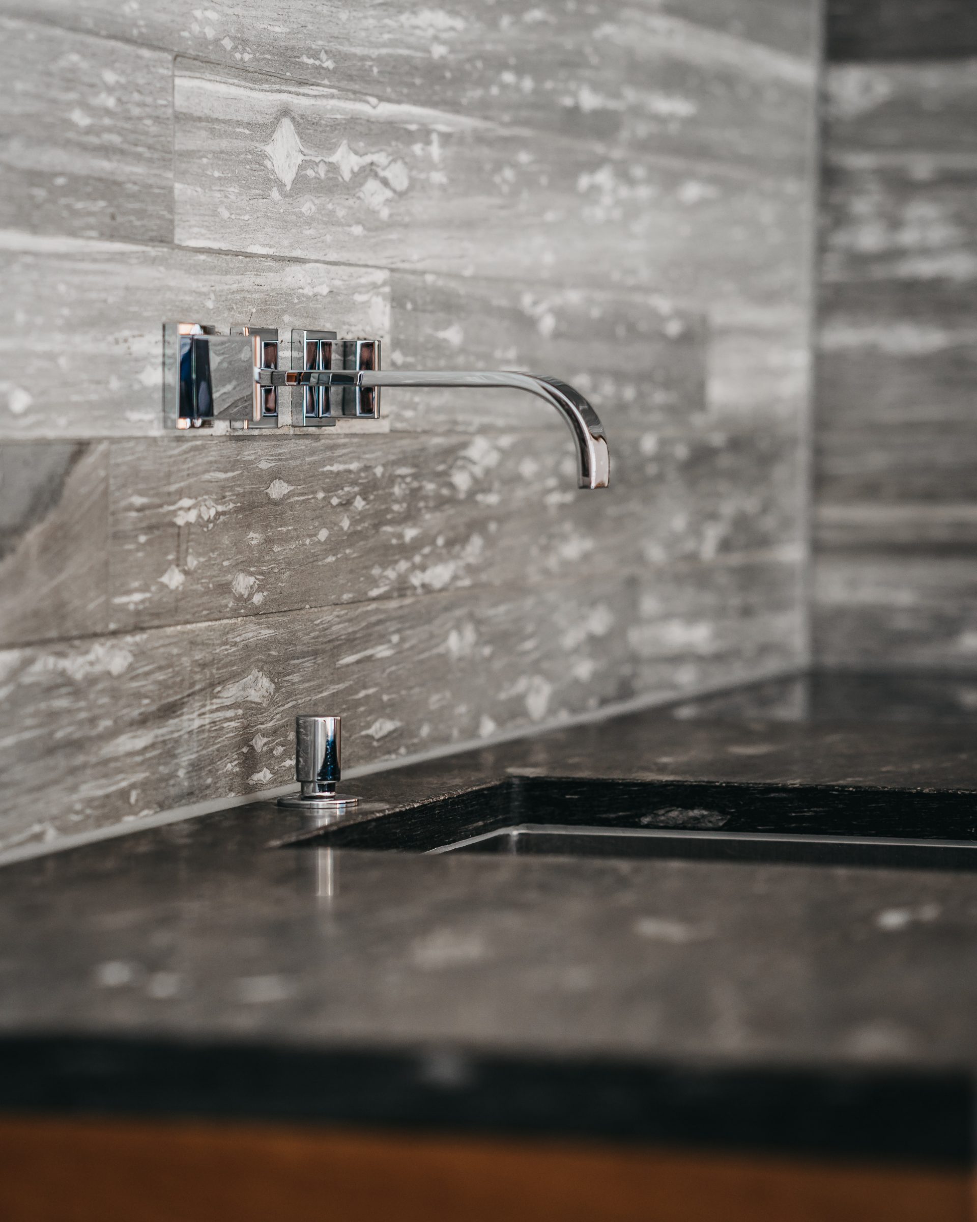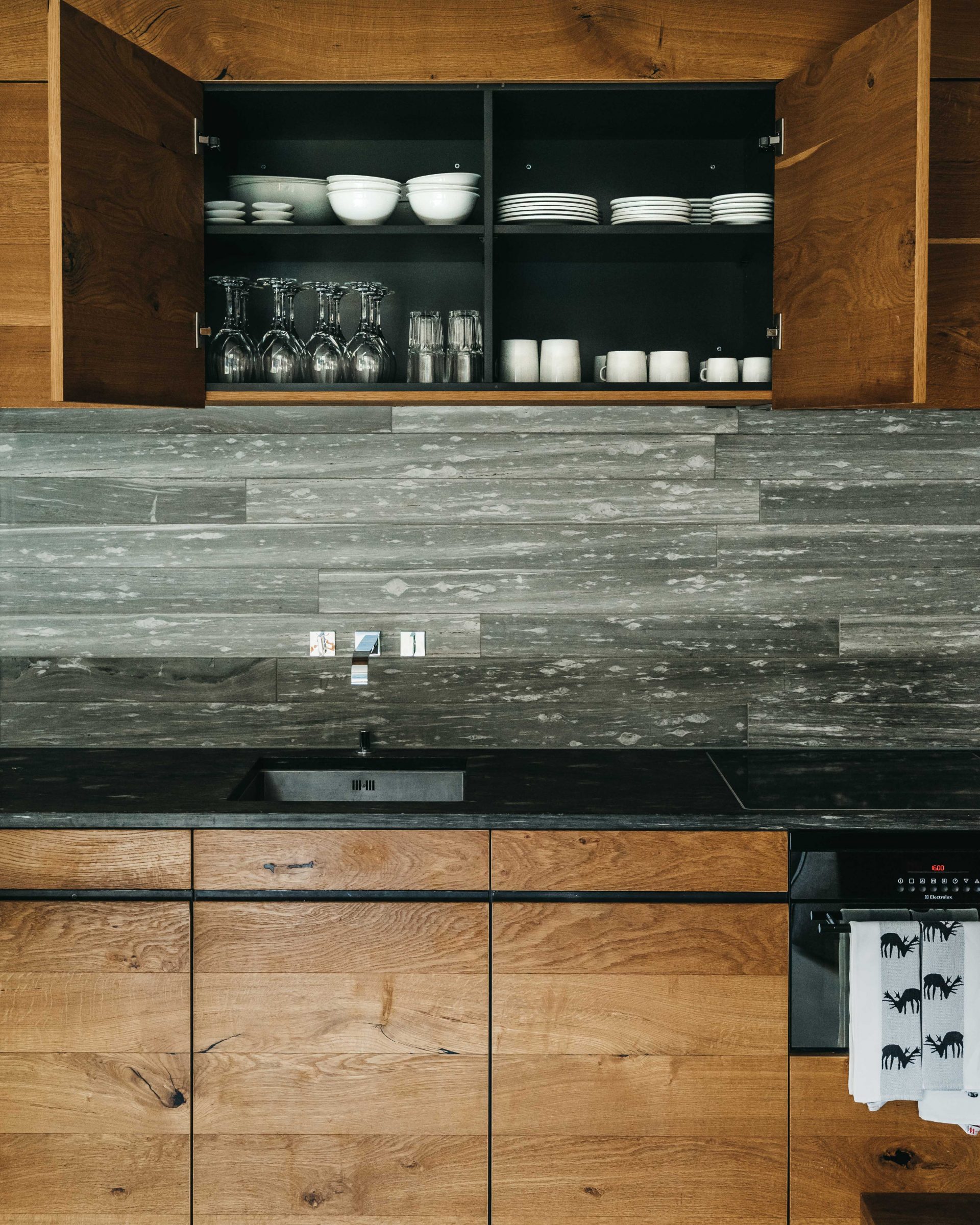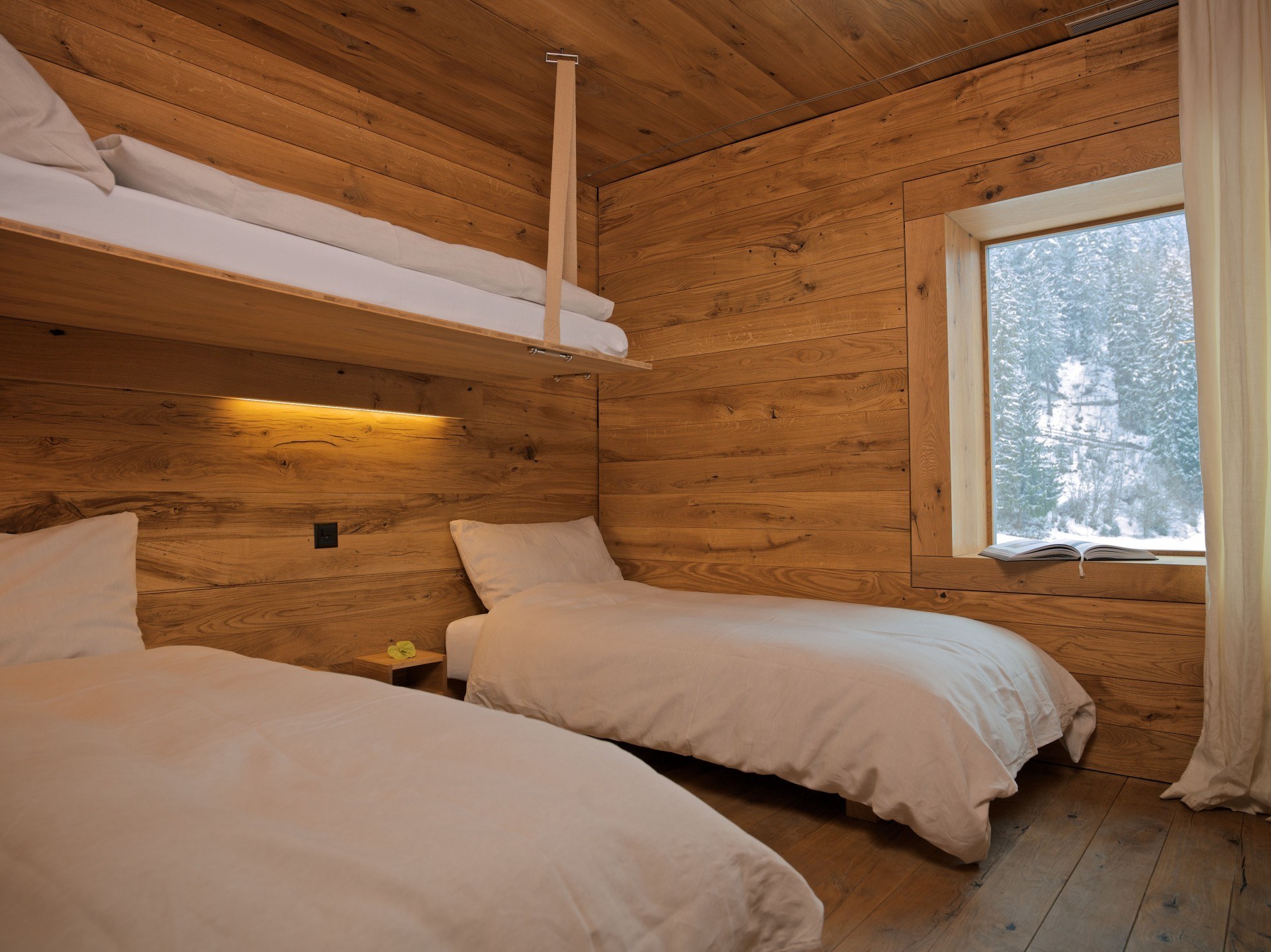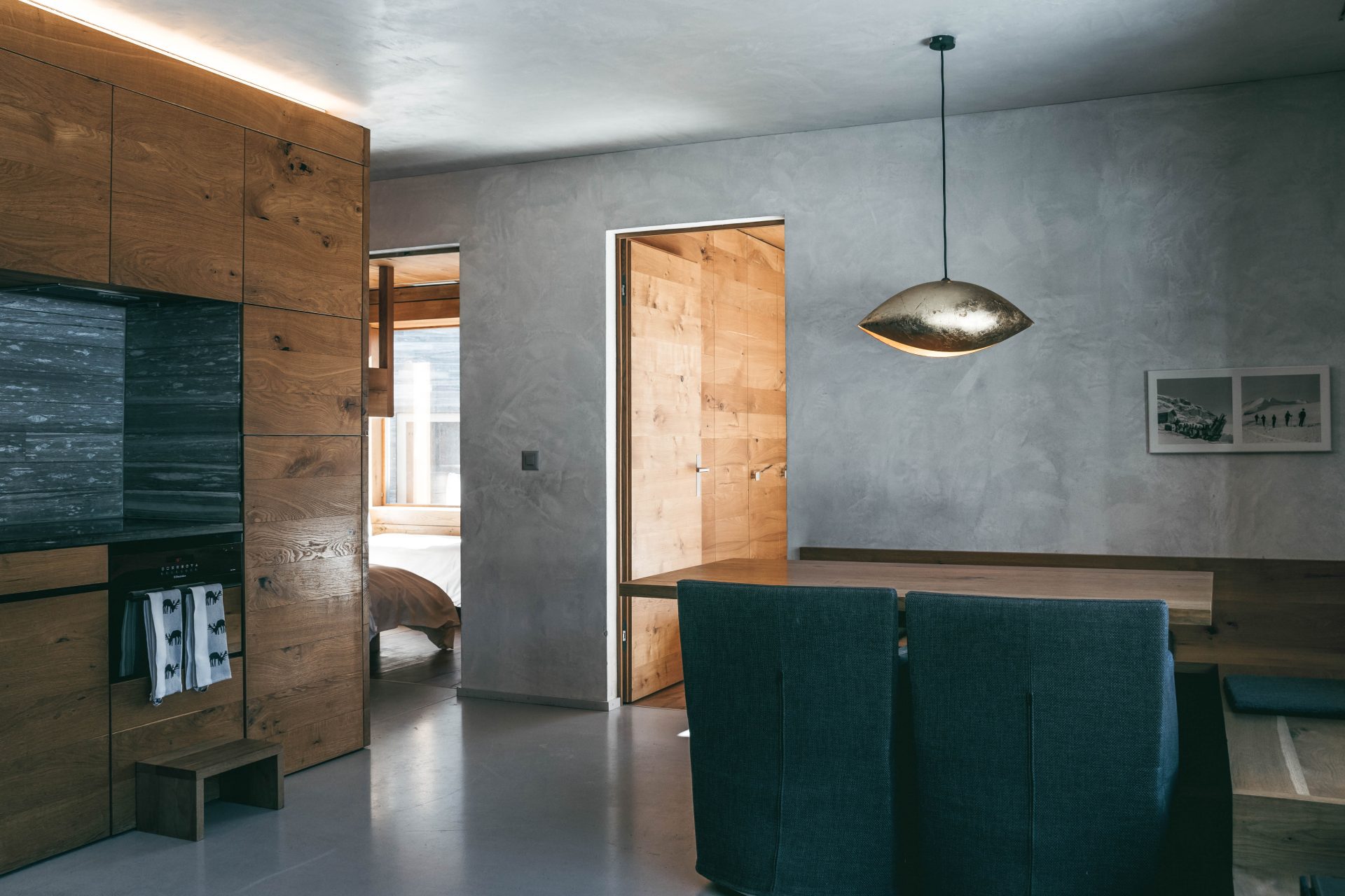 Zewnętrzne elewacje wyłożone są kwarcytem z lokalnych kopalni, a ultranowoczesne, modernistyczne, proste i eleganckie wnętrza to połączenie jasnego drewna, stali i kamienia. Wszystko jest zaprojektowane w zgodzie z naturą, utrzymując idealną temperaturę wnętrz.